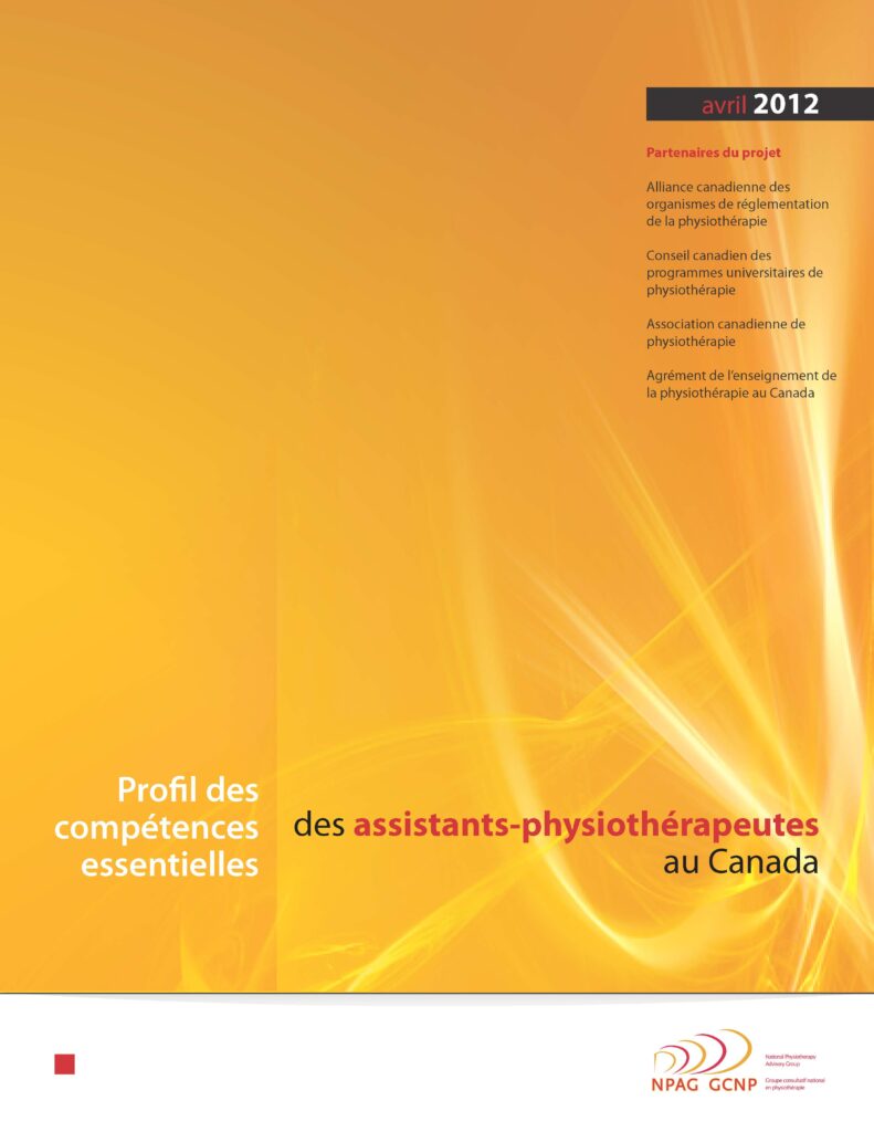 Les profils des compétences essentielles (PCE) en physiothérapie décrivent les connaissances, habiletés et attitudes essentielles aux physiothérapeutes et aux assistants-physiothérapeutes en début de carrière au Canada.
