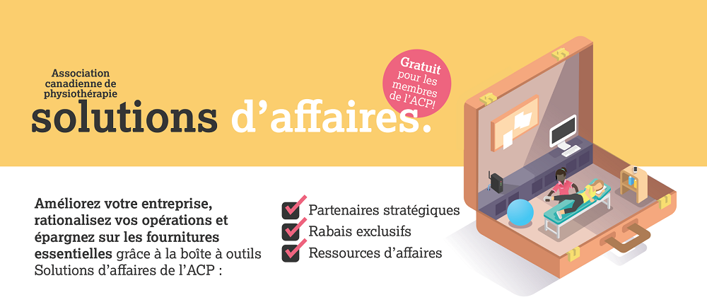 Offre exclusive pour les membres de l’ACP : À titre de membre, vous pouvez maintenant accéder à Physitrack grâce à une offre exclusive vous donnant un rabais de 20 %. Cette offre comprend un essai gratuit de 30 jours, sans engagement. Une fois abonné, vous pouvez annuler en tout temps parce que la licence Physitrack est mensuelle. Vous pouvez en apprendre plus et profitez de l’offre pour les membres de l’ACP ici.
