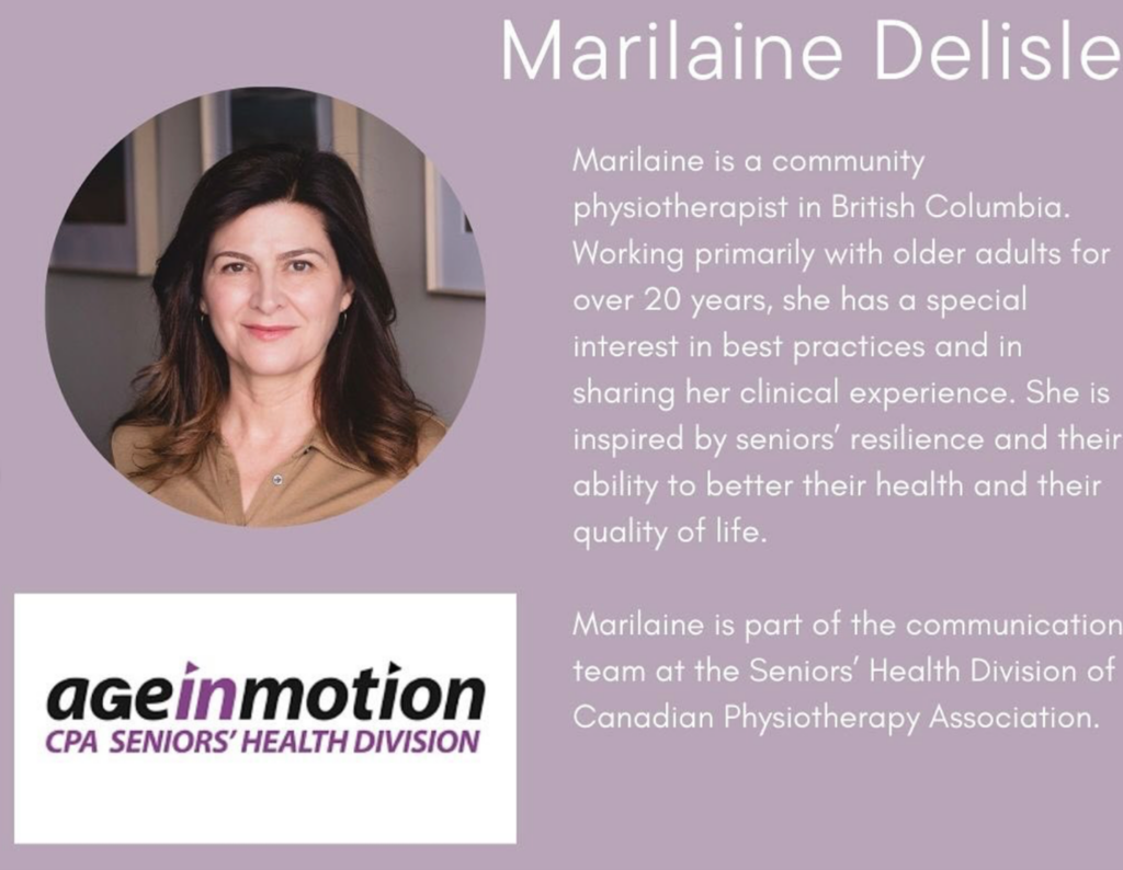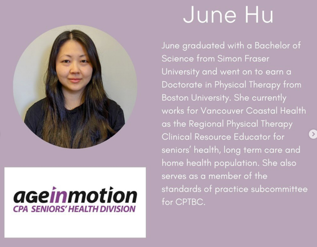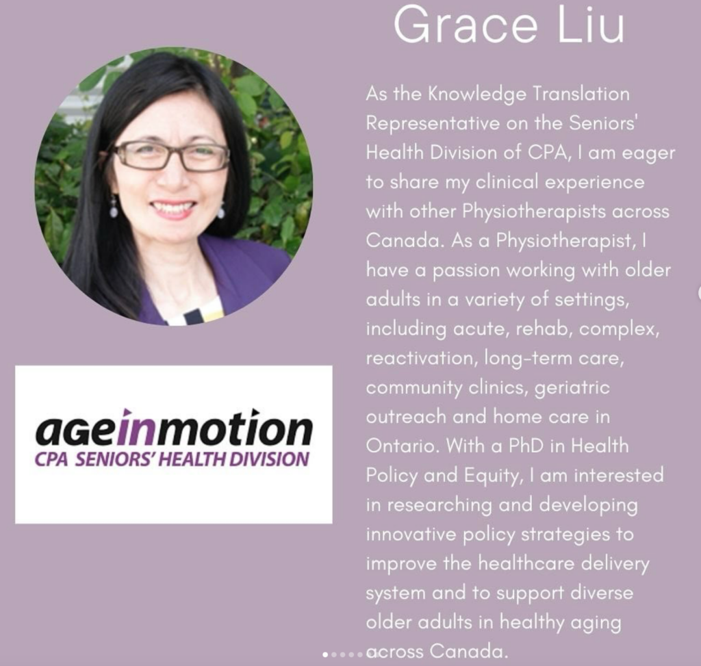 - Networking with other physiotherapy colleagues working in seniors care across Canada