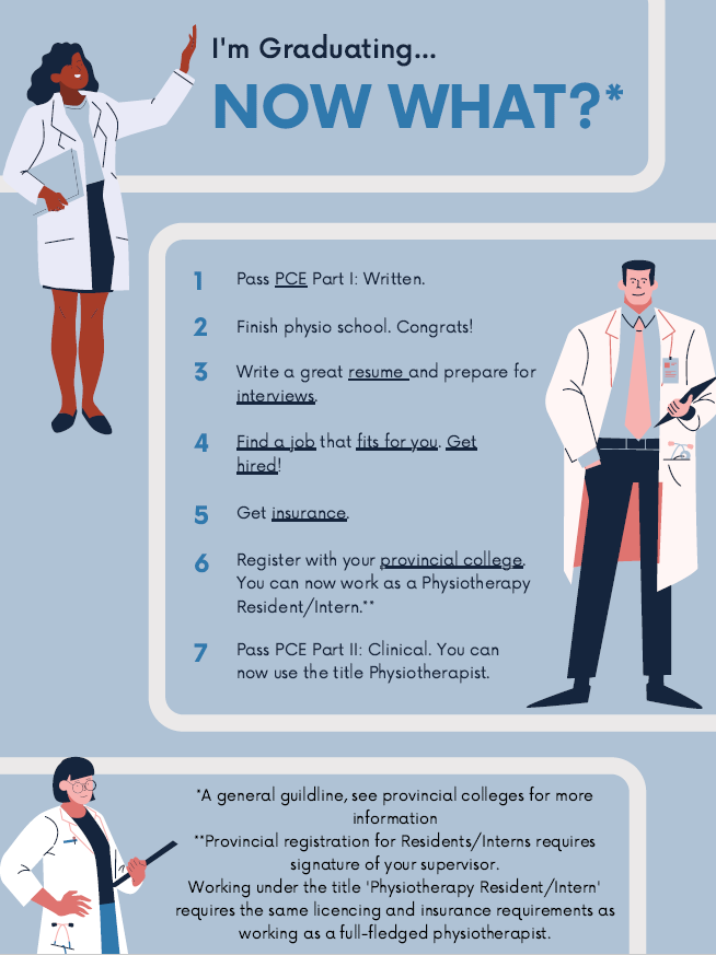 Transitioning from student to professional can be one of the biggest changes in life. The Canadian Physiotherapy Association (CPA) has put together a toolkit of resources that will ease the process. Below you’ll find links to learn more about the national and provincial/territorial associations that advocate for the physiotherapy profession, tips for finding a job, and professional development opportunities to extend your learning throughout your career