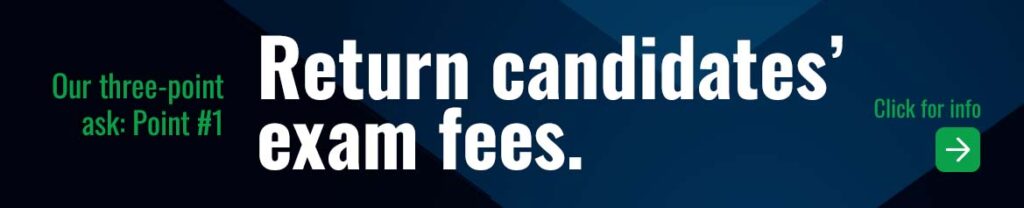 More than 2000 candidates are waiting anxiously, once again, to learn how they going to be licensed. Responsibility for a solution and the power to enact it rests solely with the 11 regulators. CPA is here to help in every way possible.