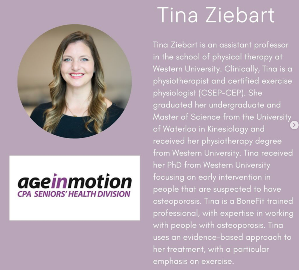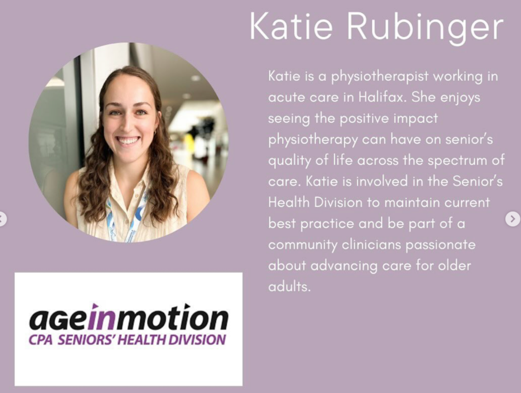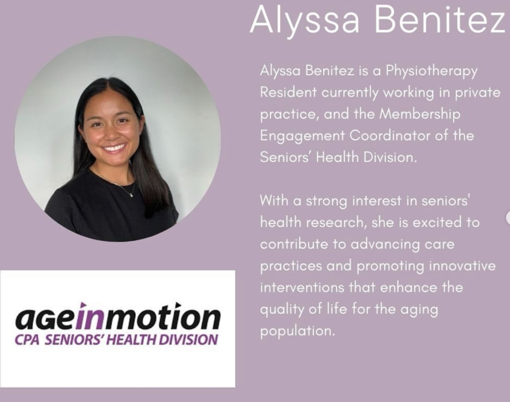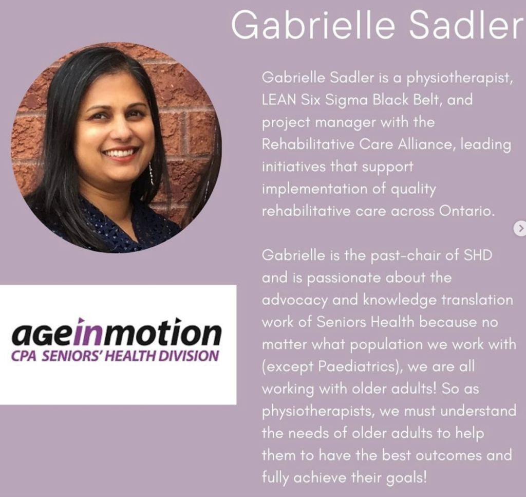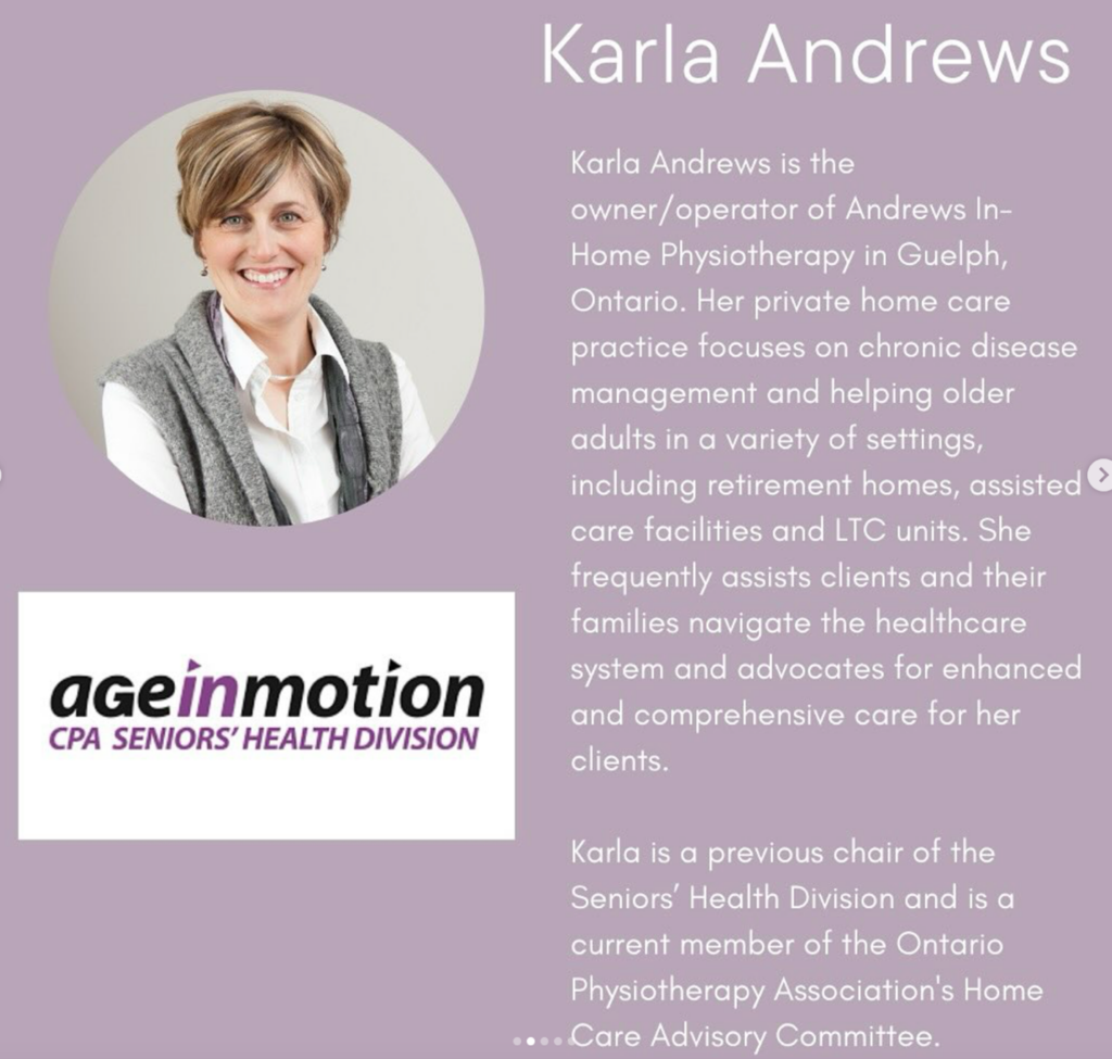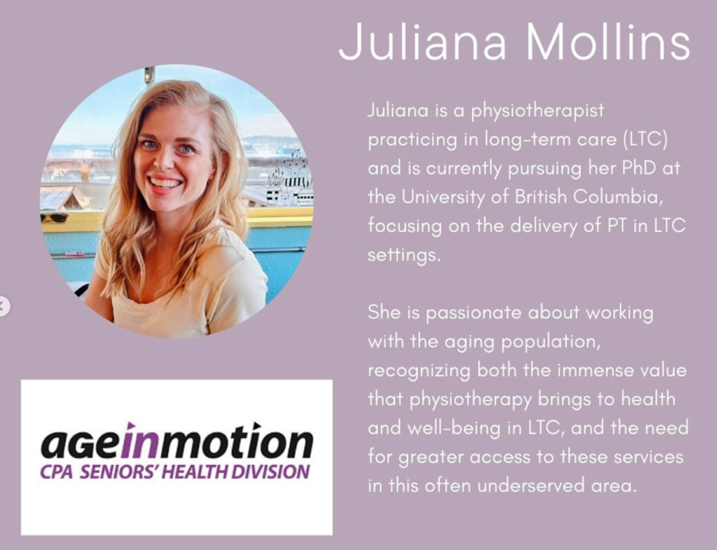 - Networking with other physiotherapy colleagues working in seniors care across Canada